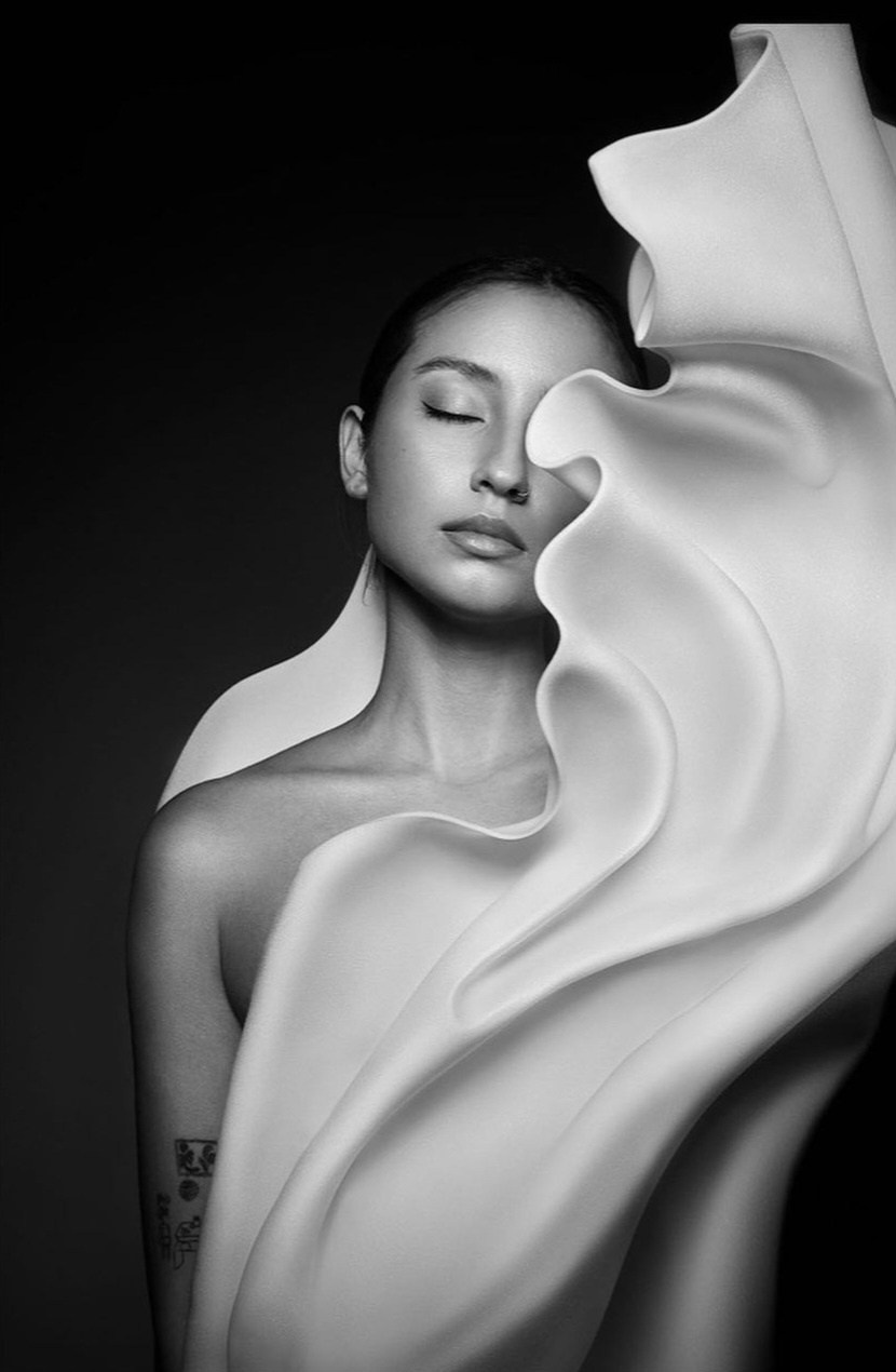 Меня зацепило, что когда Форуг Явари описывает свои серии, то использует фразу: «Мои фотографии приглашают зрителей к глубокому диалогу об уязвимости и устойчивости человеческого тела. Побуждают нас задуматься о том, как мы украшаем и защищаем себя как физически, так и эмоционально в мире, где материалы часто служат нашими молчаливыми союзниками»